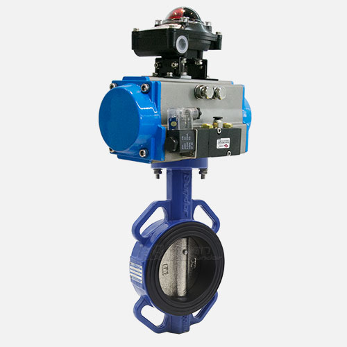 般德閥門公司生產的D671X寬邊對夾氣動蝶閥,在對夾蝶閥上面配上氣動執行器。它的優點在于,氣動執行器的執行速度相對較快,不需要工人親力親為,很大程度上節約了人力資源和時間。氣動對夾蝶閥可用于現場要求空間比較窄、管道距離較短的場合。蝶閥體內無連桿、螺栓等、工作可靠、使用壽命長,可以多工位安裝,不受介質流向影響。D671X寬邊對夾氣動蝶閥廣泛地應用到冶金、電力、石油、化工以及給排水等腐蝕性介質的管道上,是調節流量和截斷流體的裝置。