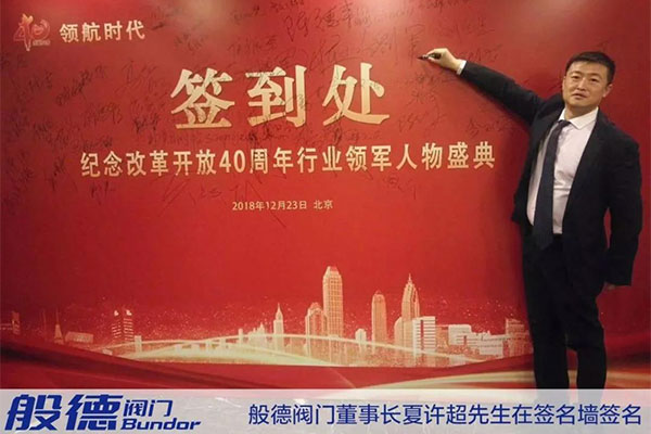 2018年12月23日,般德閥門董事長夏許超先生受邀參加由中國管理科學研究院區域改革發展研究所、《商業觀察》雜志社、中國電子商務協會品牌案例研究院決定聯合舉辦的“領航時代——紀念改革開放 40 周年行業領軍人物盛典暨信用與品牌建設成就巡禮”,參加此次盛典的主要有全國人大、全國政協、國家有關部委領導、著名經濟學家、商界領袖、行業大咖、品牌專家、誠信企業家以及來自各行業杰出代表。